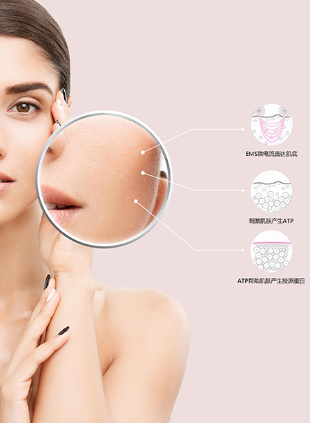 微電流刺激肌肉收縮,增強(qiáng)面部肌肉張力,提升松弛皮膚,改善輪廓,從而使皮膚減少皺紋,提升肌膚質(zhì)感。
